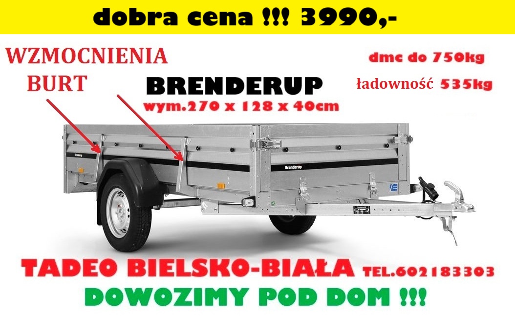 lekka przyczepa BRENDERUP 2270XL 270x128x40 wyższa burta